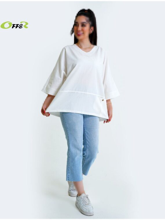 شومیز لینن خفاشی تک جیب، پارچه لینن بدون آبرفت