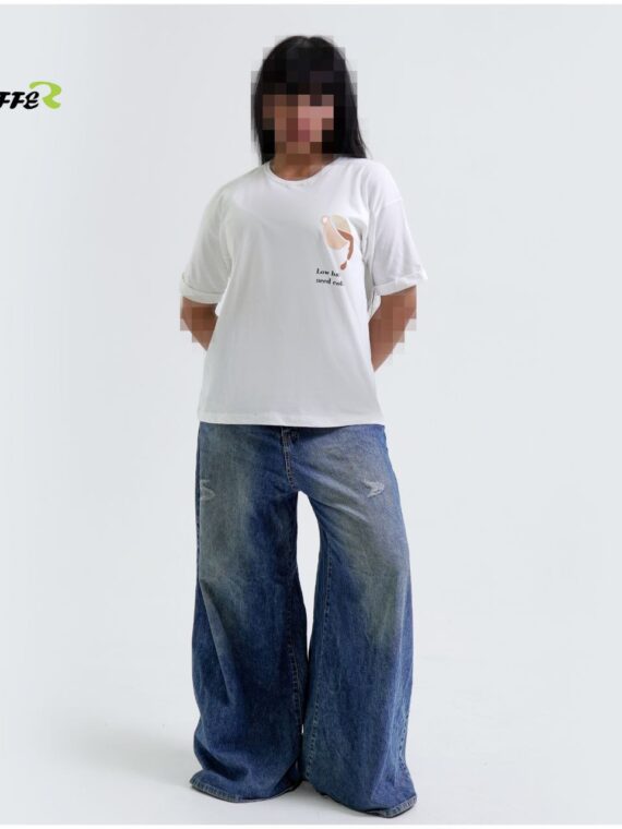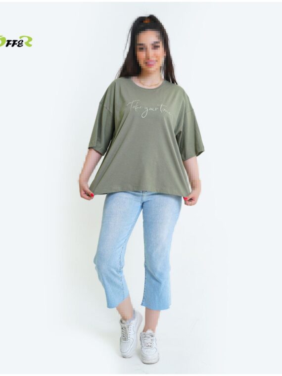 تیشرت باکسی گلدوزی take your time، جنس پارچه پنبه سوپر، دور سینه ۱۲۴ در ارتفاع ۶۲