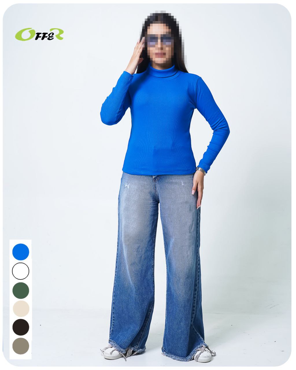 بلوزکش یقه اسکی ساده ، پارچه کش پنبه سوپر