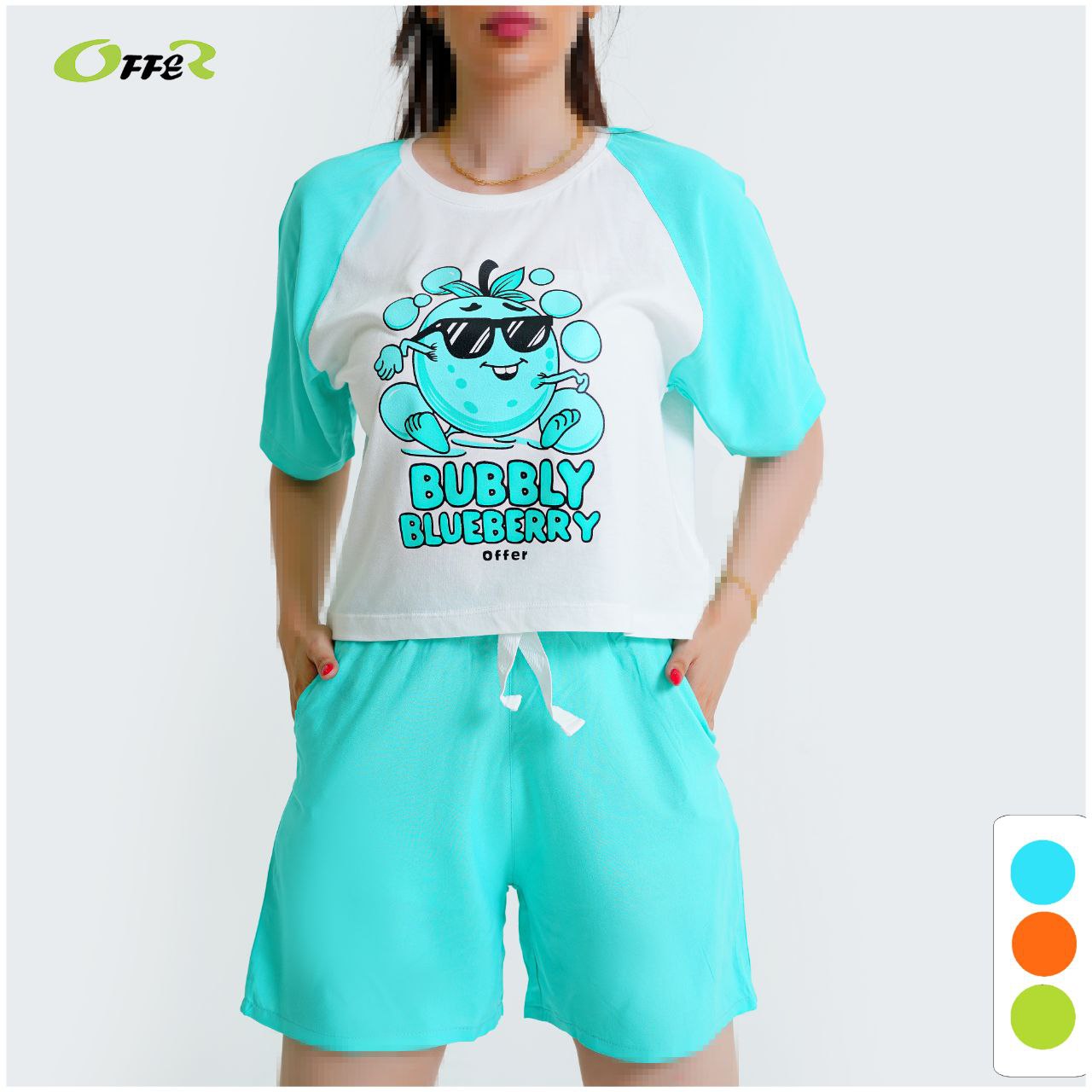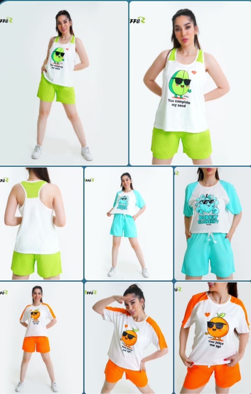📦بسته ها ۹تایی 🎨 ۳رنگ 🧵داخل بسته از هر ۳قواره یعنی تاپ و تیشرت و کراپ و همچنین هرسه چاپ آواکادو و بلوبری و پرتغال گذاشته شده است