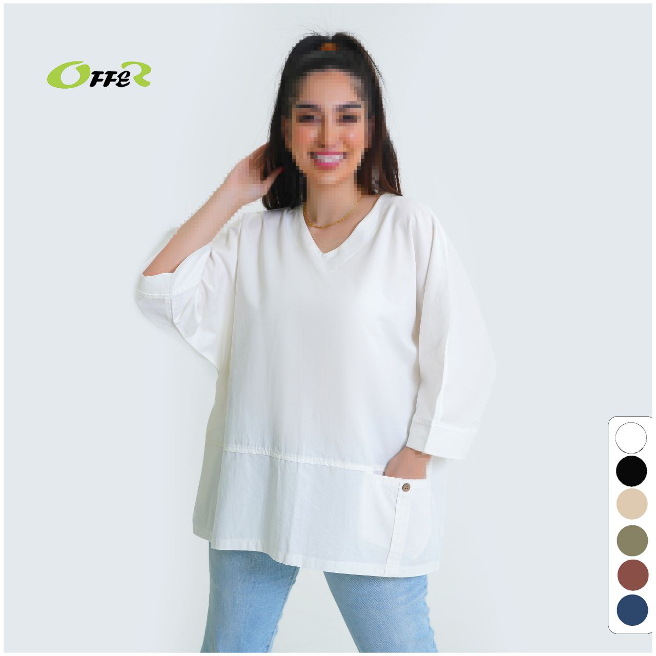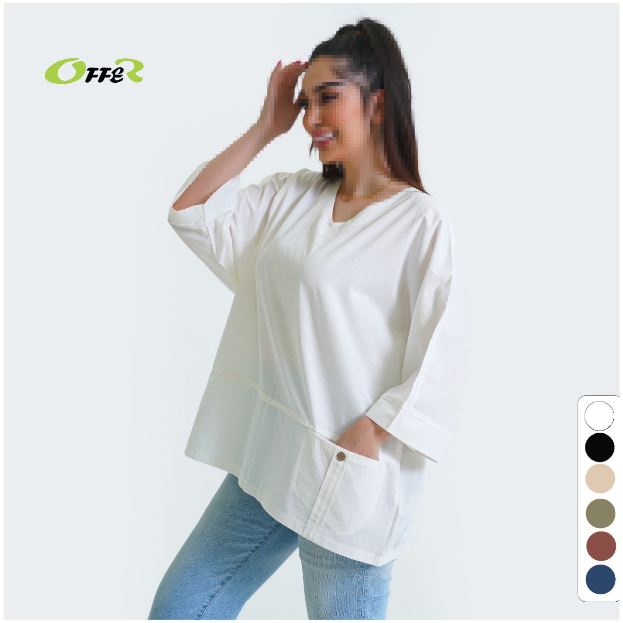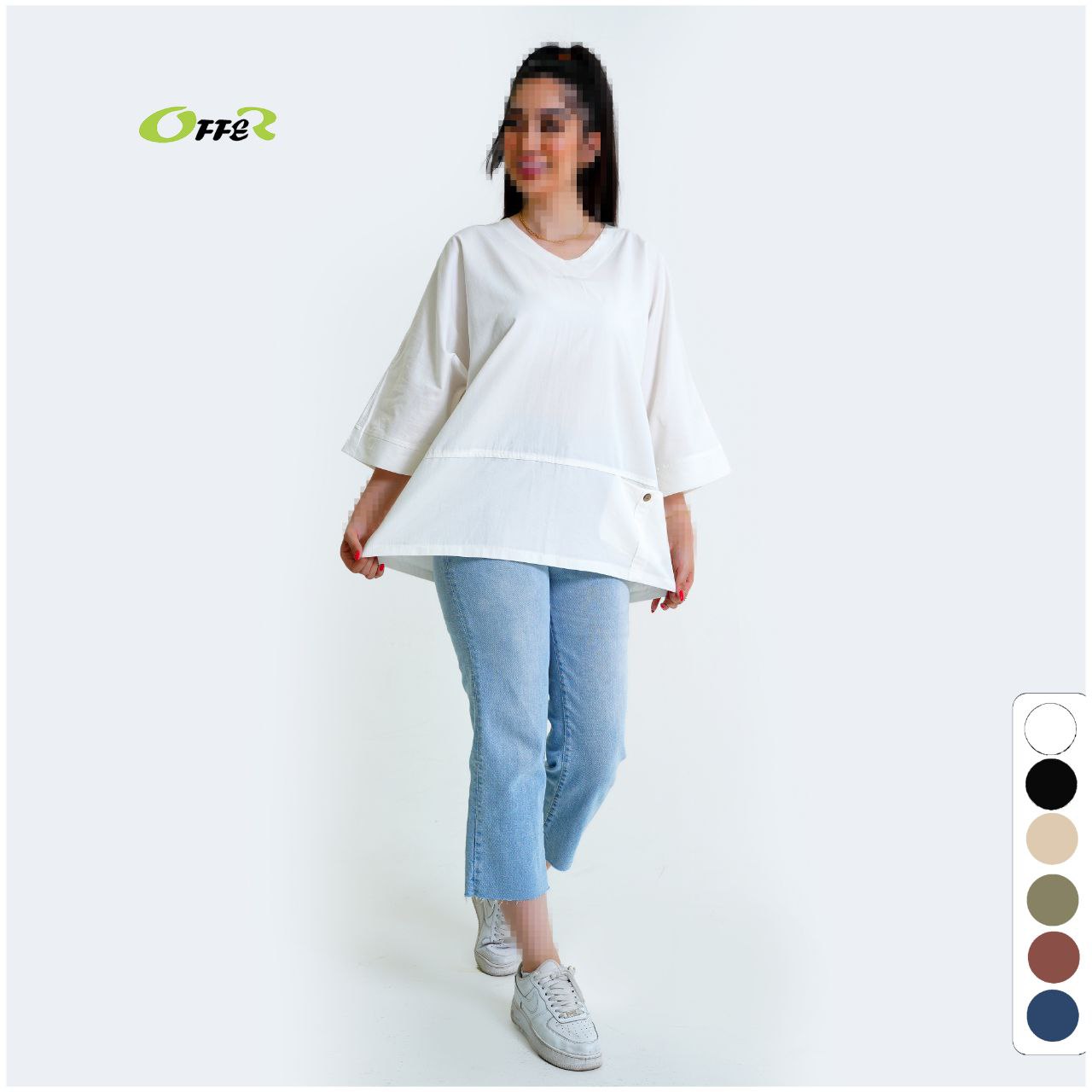 شومیز لینن خفاشی تک جیب، پارچه لینن بدون آبرفت